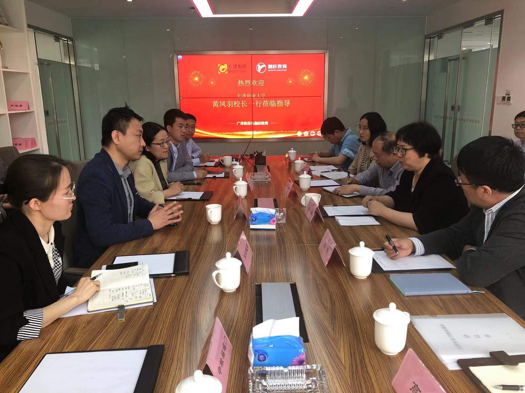 为深入贯彻落实党中央、国务院“稳就业”“保就业”决策部署,有效挖掘天津本地岗位资源,进一步深化校企合作,5月11日上午,副董事长黄凤羽带队前往正融科技产业园开展访企拓岗交流活动,公司党委书记曹军、副经理白默、副经理屈小兰、财务管理系主任彭飞、辅导员高策陪同。广泽集团副总裁陈文龙、伍创电商人力总监汪曼丽、融跃教育总经理李宏飞等企业主要负责同志参加了交流座谈活动。