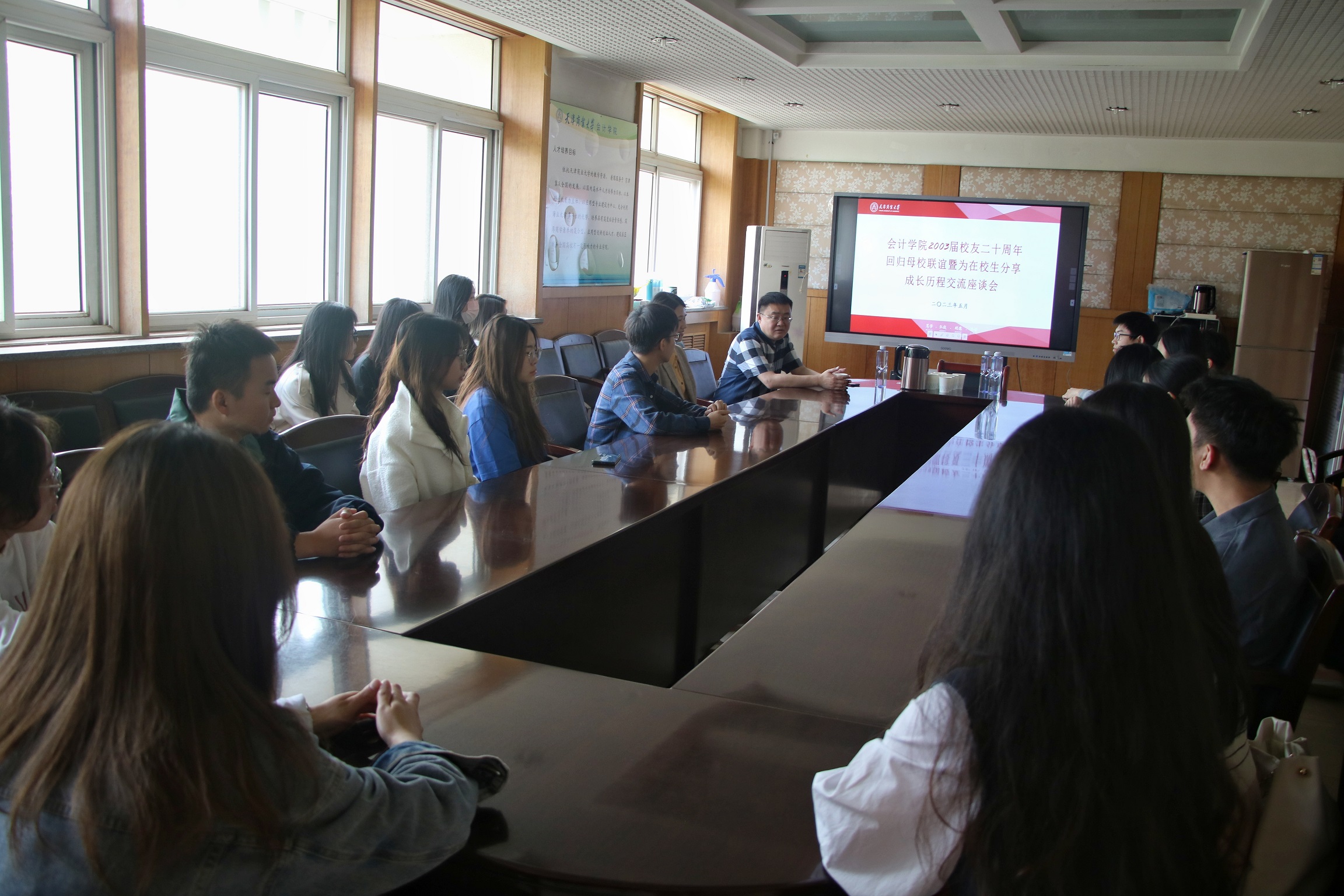2023年5月2日上午,球报体育2003届员工毕业二十周年回归母校联谊,应公司邀请,在球报体育310会议室面向在校生开展了一场别开生面的座谈会。