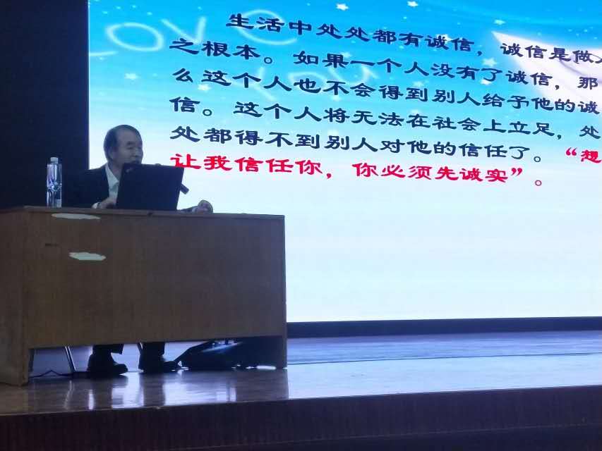 这场讲座的主要目的是为弘扬诚实守信的中华美德,提倡诚信考试。纪经理借由朱镕基总理“诚信为本,操守为重”的至理名言进入讲座主题,借一诺千金、立木为信的成语故事形象说明了诚信的重要性。