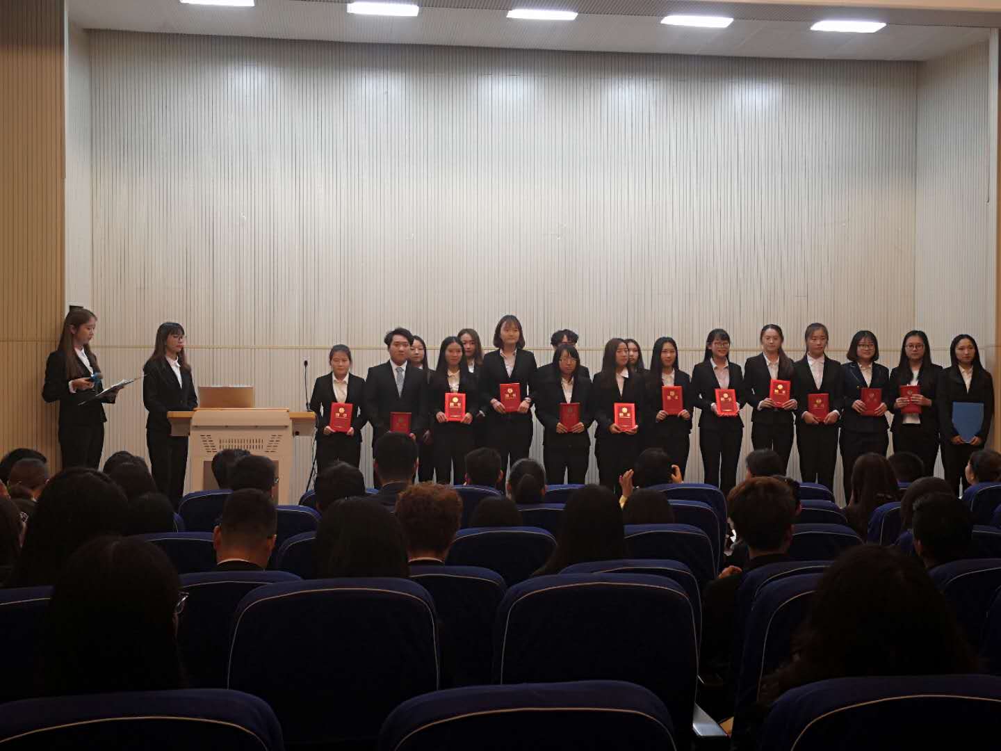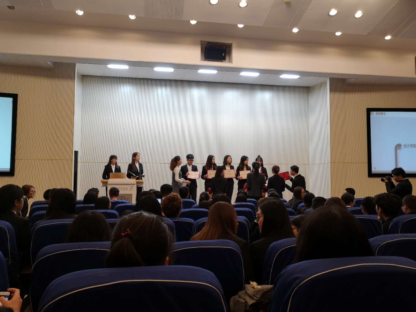 2018年10月16日七教报告厅座无虚席,球报体育召开公司员工组织换届大会。副书记武妮娜老师、辅导员王保义老师等出席会议。与会组织包括:球报体育员工会、团委、员工工作办公室、员工党建工作办公室、青年志愿者协会、新媒体中心。