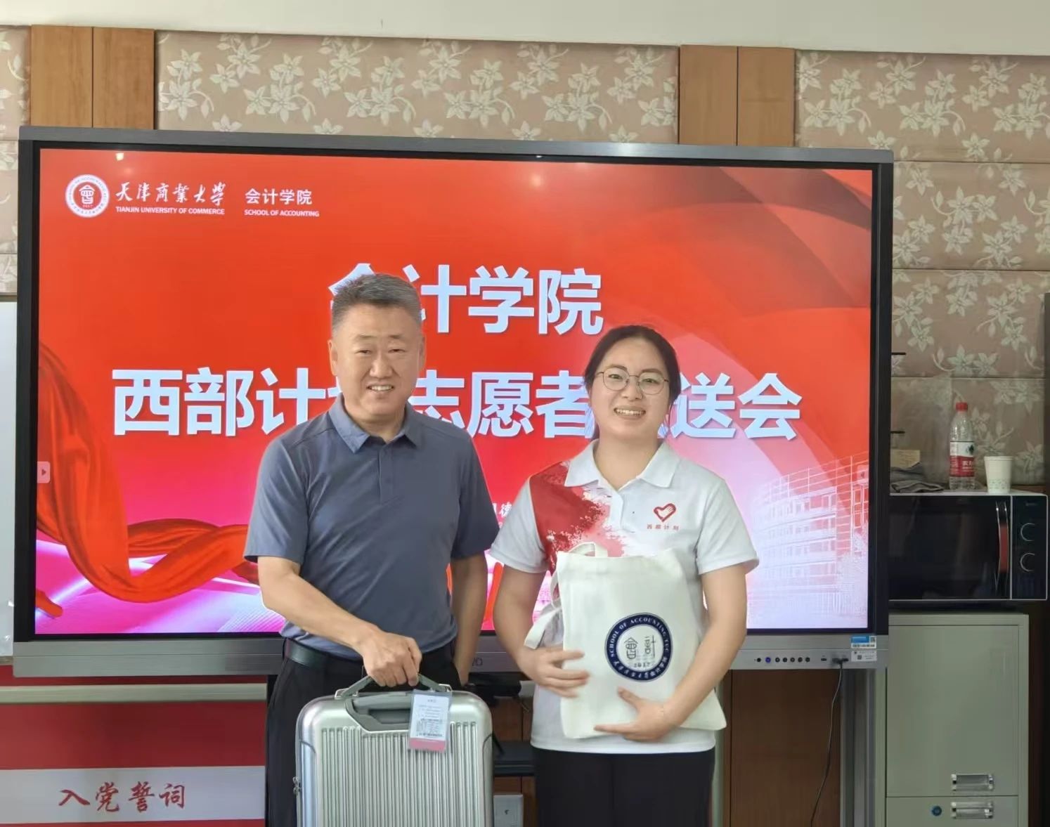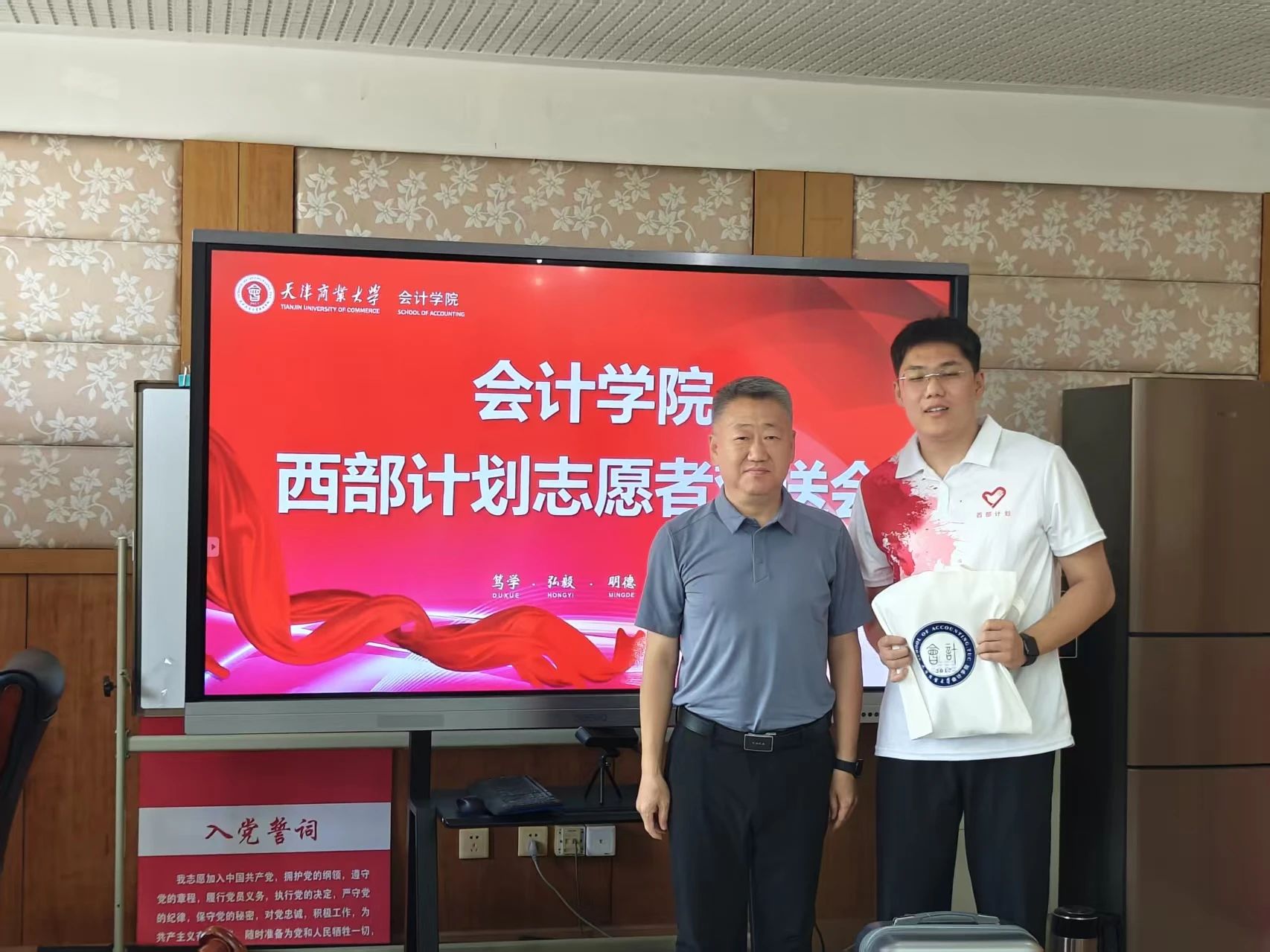 会计2401班陈富臻作为低年级员工代表,向即将远行的志愿者送上祝福:“学长学姐的选择令人钦佩,是我们学习的榜样,祝愿你们在工作岗位上勇于挑战,一切顺利。我的家也在西部,未来我也希望有机会能像你们一样,用青春和热血贡献一份力量。”