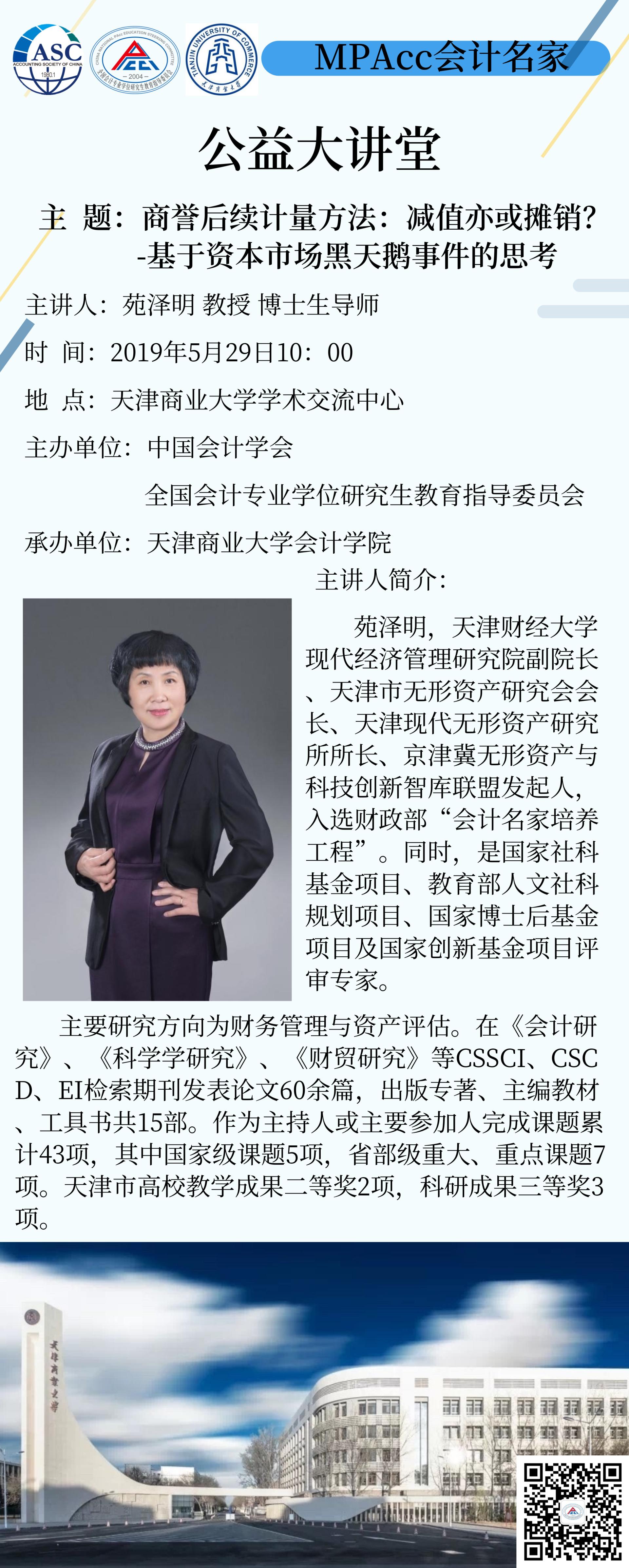2019年5月29日,财政部会计名家培养工程入选者苑泽明教授将在球报体育举办精彩讲座