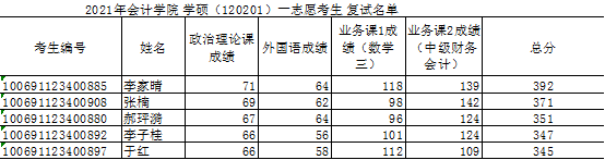 2021年会计学硕第一批复试名单