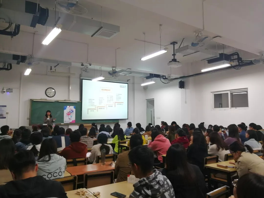 为了使同学们对立信会计师事务所内的工作更加了解,立信在职审计员白莹莹为在场同学谈自己的经验分享。白莹莹女士已在立信分所从事审计工作三年,并在三年之内获取CPA 证书,她结合自身经历讲述自己的学习及工作经验,分享自己如何同时兼顾学习和工作的经验并讲述了事务所和企业的不同,最后,以PPT的形式为同学们展示了立信会计师事务所内部丰富的团建活动。