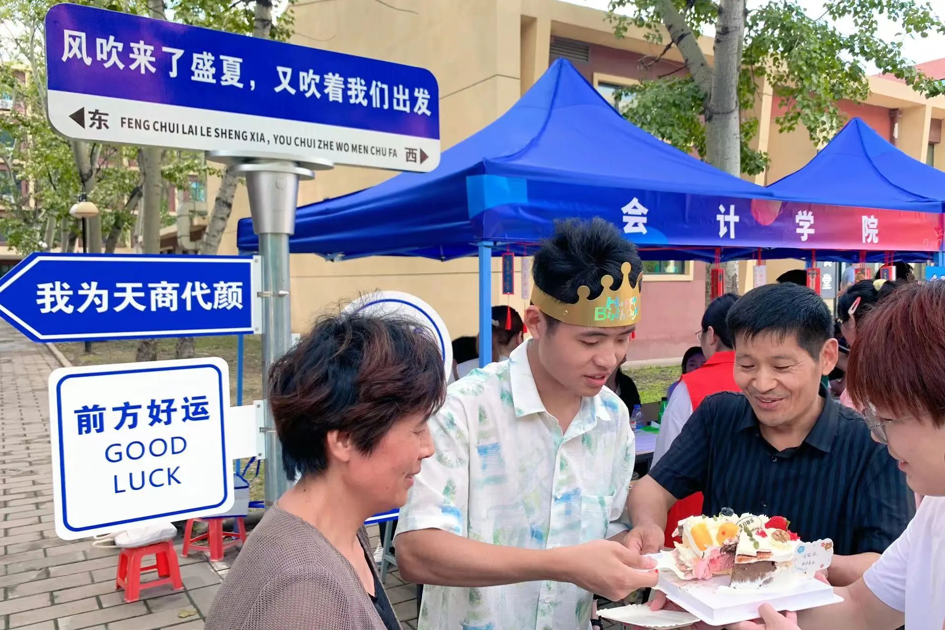 当公司迎新工作正有条不紊进行时,一曲欢乐温馨的生日歌在新生人群中悄然响起......原来在报到前新生大数据分析时,发现会计2401班李佳静、杨硕涵和财务2404班李茂林三位新生恰逢报到日过生日,于是在报到现场为三位“新生寿星”举办了一场别开生面的生日会,让新生一踏入校门便感受到公司和公司的关怀与温暖。“特别惊喜和感动!今天正好是我18岁生日,天商给了我一份特别难忘的生日,非常有意义!”2024级财务管理专业新生李茂林说道。随后,现场师生与家长们分切蛋糕、送上祝福、畅谈未来,一同分享生日的甜蜜和喜悦,祝贺新同学们开启人生新的篇章。