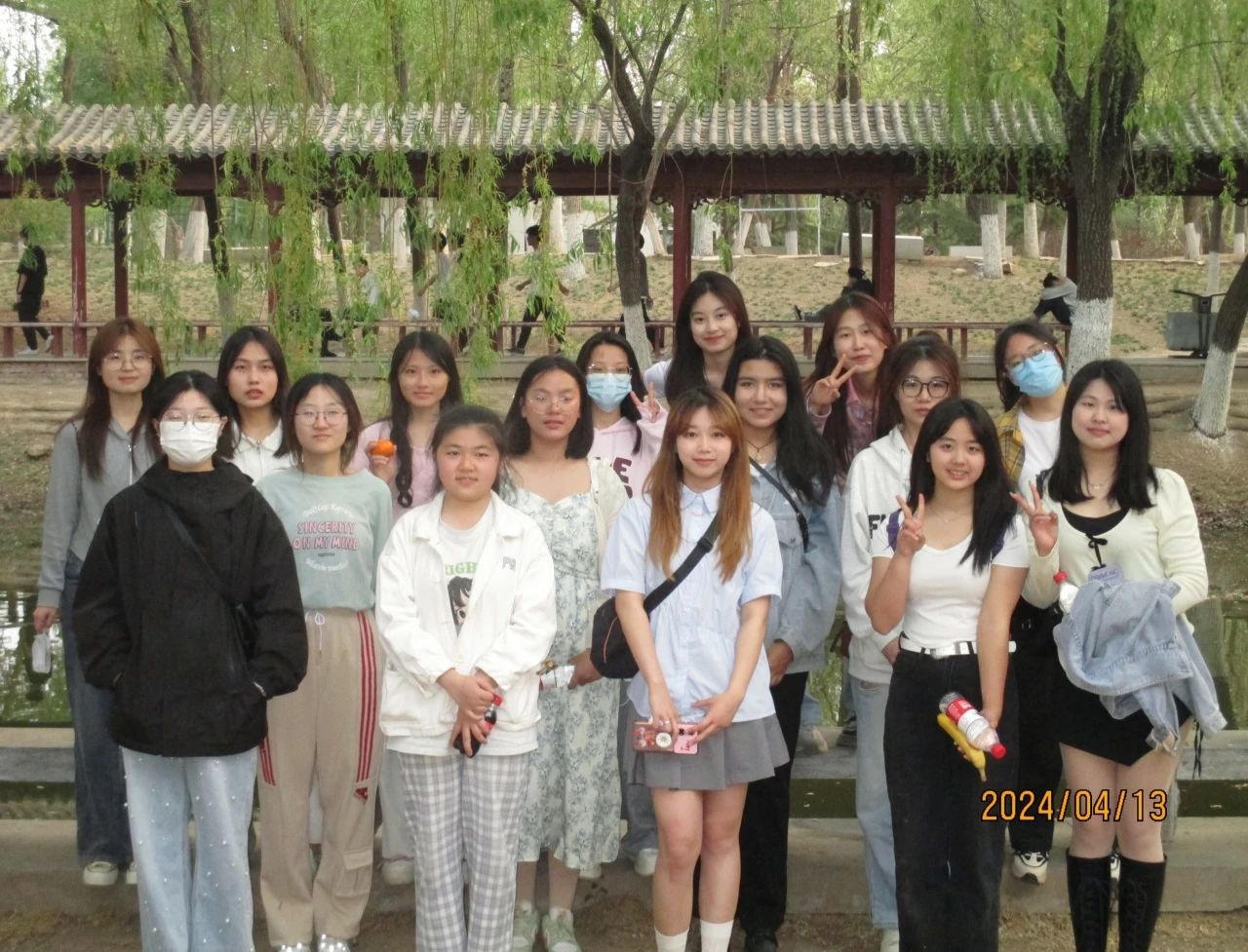 人随春好,春与人宜。微风吹拂,杨柳依依,在小游戏过后,同学们开始自由活动,或是三五成群,拍照记录;或是围坐草地,嬉戏打闹;或是分享日常,在天津求学这段日子里所行走的津门故里,所品味的津门文化,大家侃侃而谈,无不流露出对天津这座城的尊敬与喜爱。正如高盛元老师所言:“去感受一根草,一棵树,一缕风,一场日落,去重新触摸真正的生活。”天地间,与草木同行,喜乐于山间的风,温柔于傍晚的花。在感受自然盛宴的同时,同学们也更加生动地了解彼此。